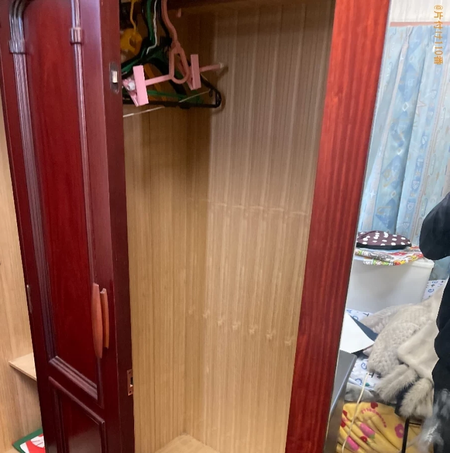 担当のコメント 冷蔵庫、婚礼タンス、こたつ等の処理にお困りのお客様からご相談いただきました。運び出しもできることがご依頼の決め手になったようです。片付け110番では、二階の窓からの搬出や階段での運び出しも行わせていただきます。不用品にお困りの際はまたいつでもご相談ください。